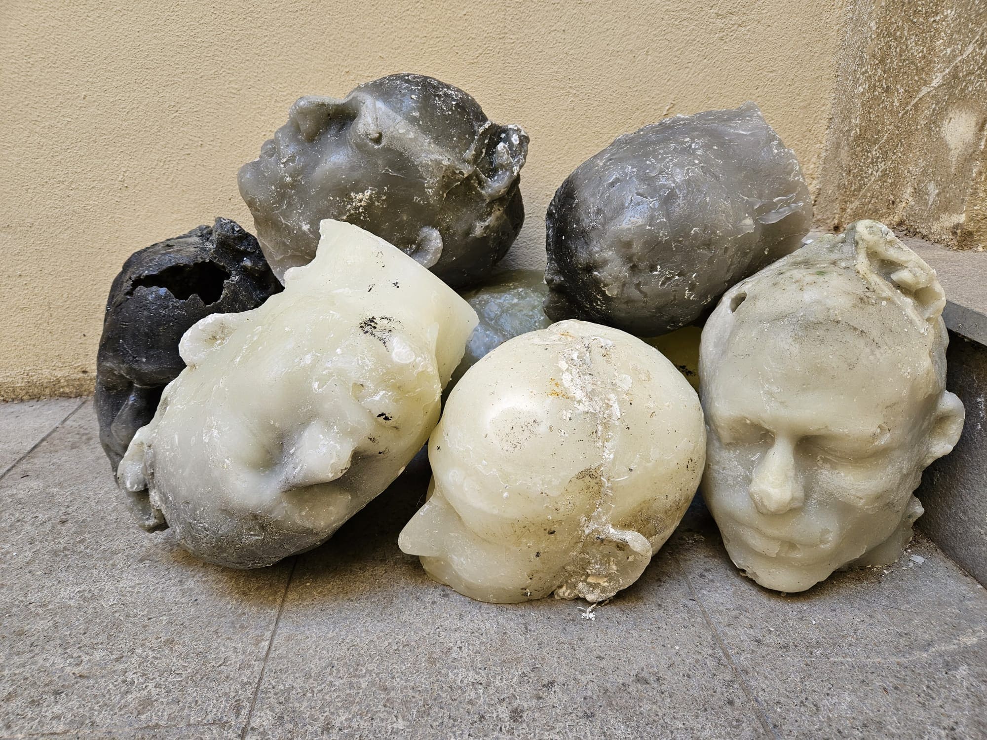 L’opera è composta da dieci stampi di teste umane (tra cui il capo dell’artista) aventi come colore la scala di grigi che dal nero sfuma verso il bianco. La scelta del materiale, inoltre, la paraffina, allude simbolicamente al ruolo sacrale per cui è stato impiegato, alla sua fragilità ma anche alla malleabilità dello stesso materiale.